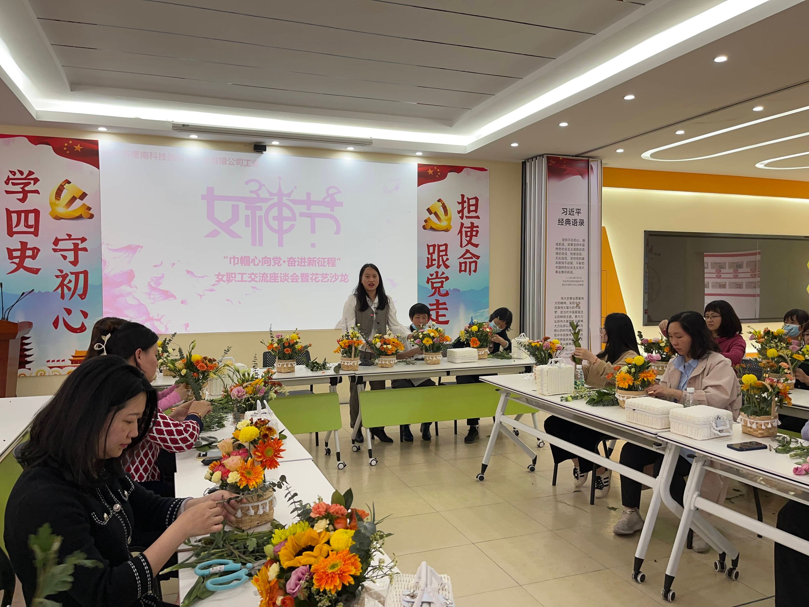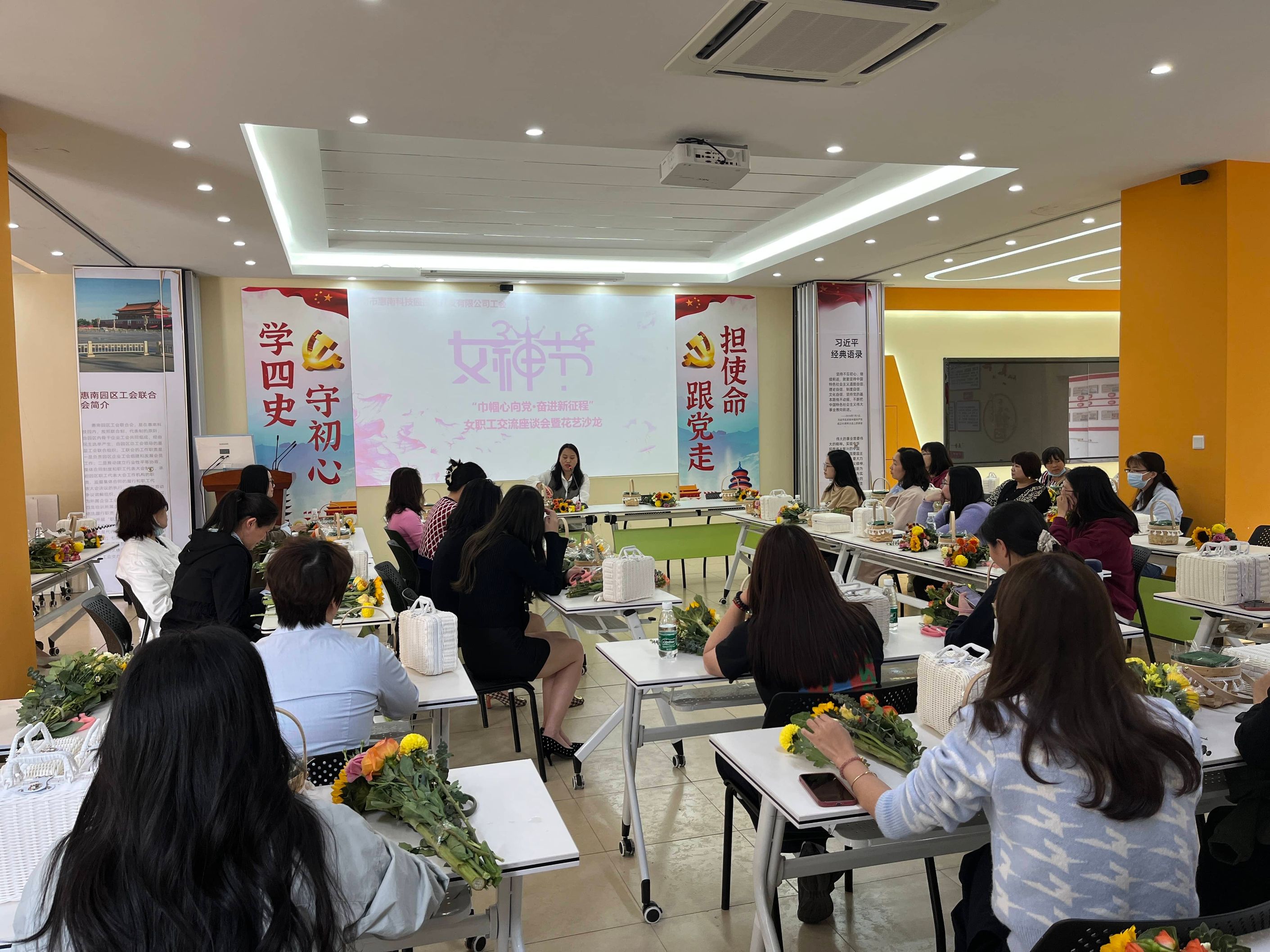 為營造三八國際勞動婦女節(jié)活動氛圍,豐富女職工的業(yè)余生活,提高女職工陶冶身心生活藝術。3月7日下午,投開公司工會在惠南黨群服務中心舉辦“巾幗心向黨·奮進新征程”主題座談會暨花藝沙龍?;菽贤堕_公司工會會員40余人參加活動。