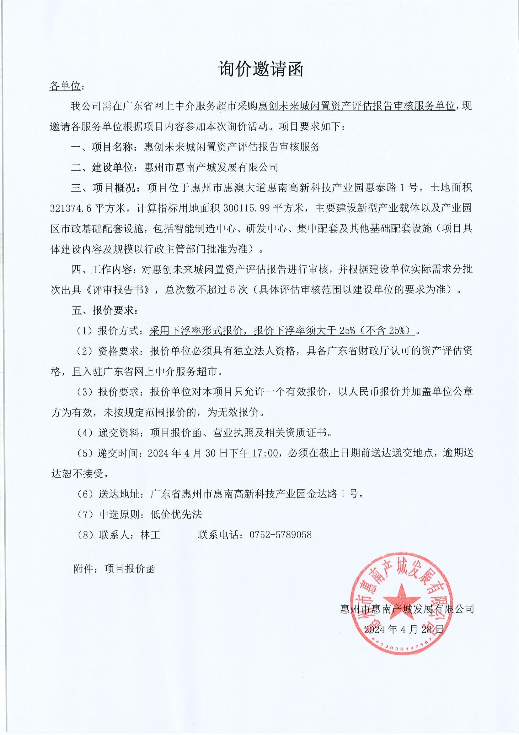 惠創(chuàng)未來城閑置資產(chǎn)評估報告審核服務(wù)詢價邀請函