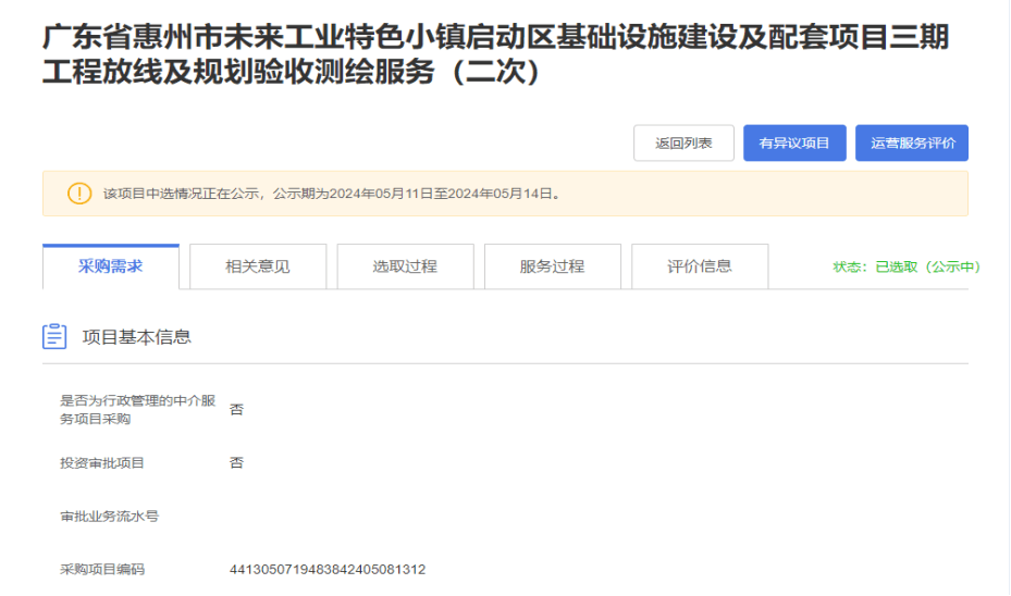 【公示】廣東省惠州市未來(lái)工業(yè)特色小鎮(zhèn)啟動(dòng)區(qū)基礎(chǔ)設(shè)施建設(shè)及配套項(xiàng)目三期工程放線及規(guī)劃驗(yàn)收測(cè)繪服務(wù)(二次)