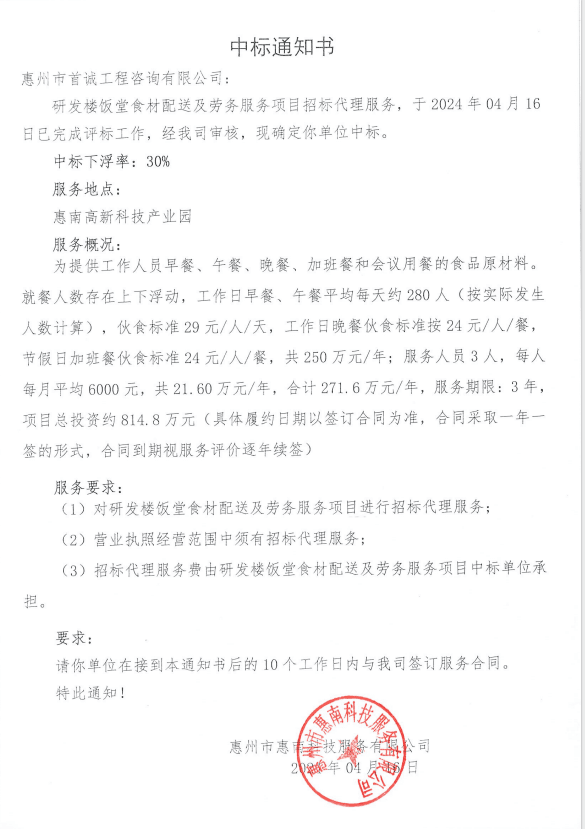 【中標通知】研發(fā)樓飯?zhí)檬巢呐渌图皠趧辗枕椖空袠舜矸?/h4>
