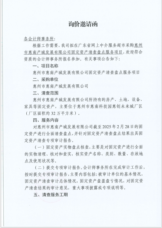 【招標公告】惠州市惠南產(chǎn)城發(fā)展有限公司固定資產(chǎn)清查盤點服務項目
