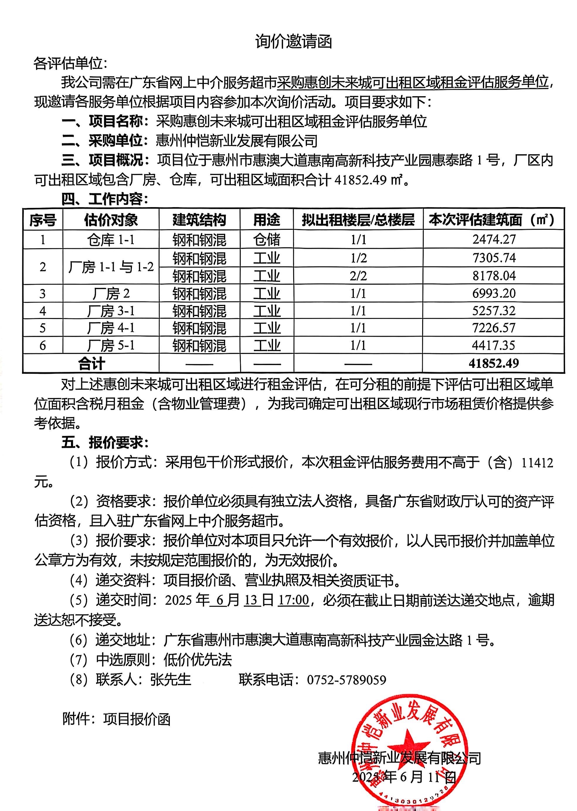 【詢價(jià)邀請(qǐng)函】采購(gòu)惠創(chuàng)未來(lái)城可出租區(qū)域租金評(píng)估服務(wù)單位